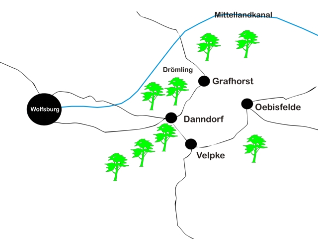 umgeben am Drömlinger Naturpark ca.10 Kilometer in Östlicher Richtung von