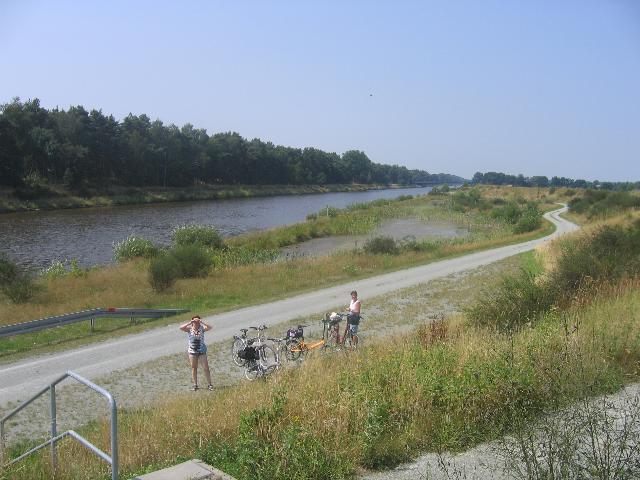 es noch ein stück circa anderthalb Kilometer am Mittellandkanal entlang wo wir dann nach links in den Drömling fahren und